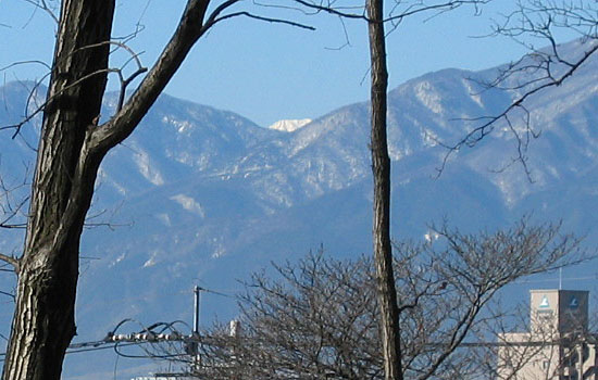 | 4 | 45km |  | 赤石岳 | 甲府市宮前町八幡神社 | 2005/02/22 | 2005/02 | Walstone | 久しぶりの好天に、近場で写真を撮ってきました。赤石岳です。甲府の町中からは、櫛形山や源氏山に遮られて南アルプスの主脈は一部しか見えません。甲府盆地を南北方向に移動しながら西を眺めると、前山の鞍部から赤石岳や悪沢岳がところどころで頭を出します。今回の写真は、そんな中の一枚です。 |