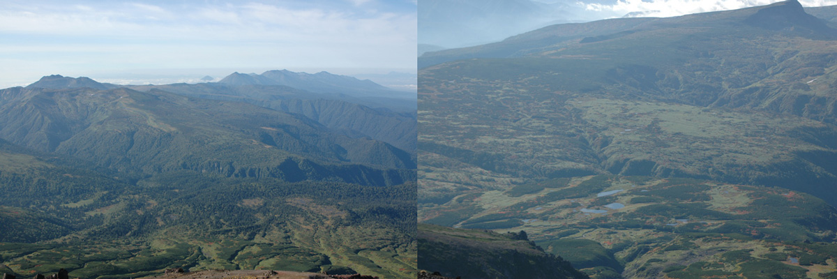 <左>トムラウシから十勝岳にかけて<右>高根ヶ原 |