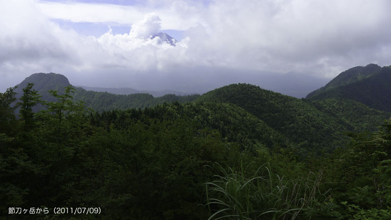 | 6 | 19km | ![]() | 富士山 | 節刀ヶ岳 | 2011/07/09 | 2011/07 | Walstone | 9日の土曜日に御坂の節刀ヶ岳と鬼ヶ岳に行ってきました。何とか富士を見ることはできましたが、それ以上の展望はありませんでした。写真の富士の左の山は十二ヶ岳、右方に鬼ヶ岳があります。 歩いたルートは、『静かなる尾根歩き』(いわゆる松浦本)の節刀ヶ岳北西尾根を登り鬼ヶ岳北尾根を下る周回コースです。ヤマボウシの白い花が奇麗でした。 |