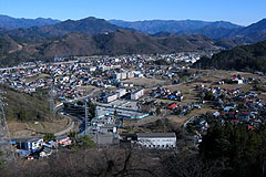 | <鹿留発電所導水管上部から 桂町と高川山> |