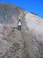 帰りは、高座山、鳥居地峠を経由して忍野に下る。逆光に光るススキの原がきれいだ。