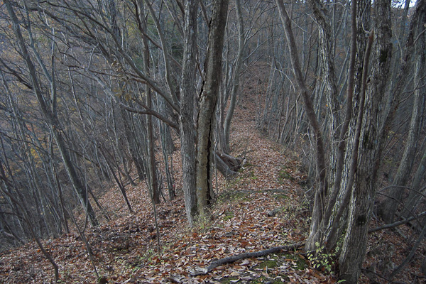 <釈迦ヶ岳北尾根>冬枯れの歩きやすい尾根道. |