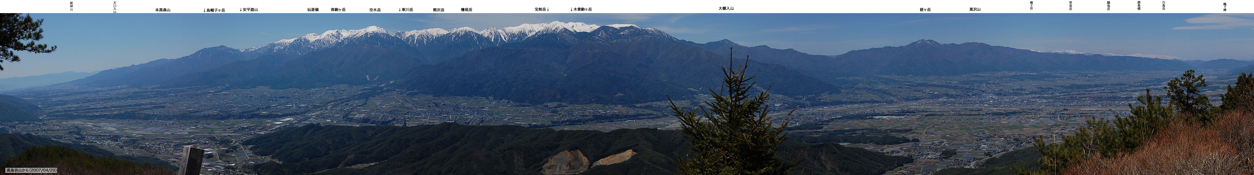 | <高烏谷山東屋下から南アルプス〜中央アルプスの展望> |